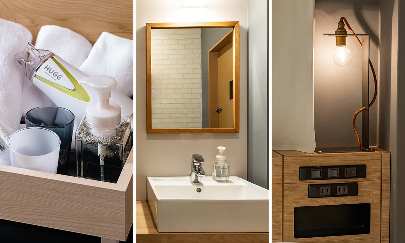 Our simply designed yet functional guest rooms come in four types, each featuring a calm and relaxing interior color scheme.